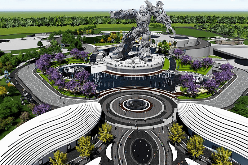 東方科幻谷(科幻主題公園)位于貴州雙龍航空港經濟區,項目總用地面積為305365平方米,建筑面積總計68657平方米。其中鋼結構最大單體建筑面積超過20000平方米,總投資100億元,是貴州打造雙龍未來城的重要組成部分。