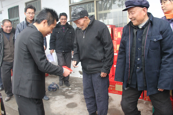 此次活動(dòng),柳溝村收到慰問(wèn)府藏孔府家酒650箱,總價(jià)值39萬(wàn)余元,受到老人們的歡迎。公司負(fù)責(zé)人還親自把600元慰問(wèn)金分別送到9戶特困老人手中,表達(dá)對(duì)他們的慰問(wèn)之情。老人們對(duì)經(jīng)典集團(tuán)的慰問(wèn)表示真誠(chéng)感謝,并祝愿經(jīng)典事業(yè)在2015年取得更大成績(jī)。