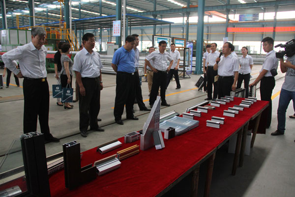 在觀摩會現(xiàn)場,與會領導首先聽取了劉董事長關于企業(yè)發(fā)展情況的匯報,隨后深入公司年產(chǎn)10萬噸高端鋁型材的生產(chǎn)車間,并現(xiàn)場聽取了項目負責人的情 況介紹。通過實地觀摩和聽取匯報,觀摩團領導對我公司能夠按照科學發(fā)展觀和區(qū)委區(qū)政府關于跨越發(fā)展的總要求,堅持解放思想,抓住機遇,高點定位,高點建設,開拓進取,攻堅破難,加快發(fā)展的做法給予充分肯定,并對我公司生產(chǎn)經(jīng)營所取得的成績給予高度評價和贊賞。