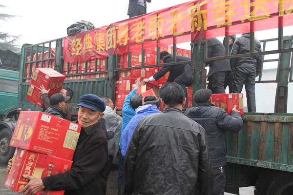 2月15日,農歷臘月二十七,經典集團來到濟寧高新區柳溝村開展了“尊老敬老新春送祝福”慰問活動,慰問柳溝村60歲以上老人和特困家庭,送去新春佳節的祝福與問候。