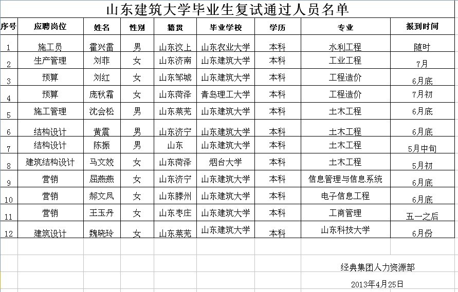 山東建筑大學(xué)2013年4月23日復(fù)試通過人員名單