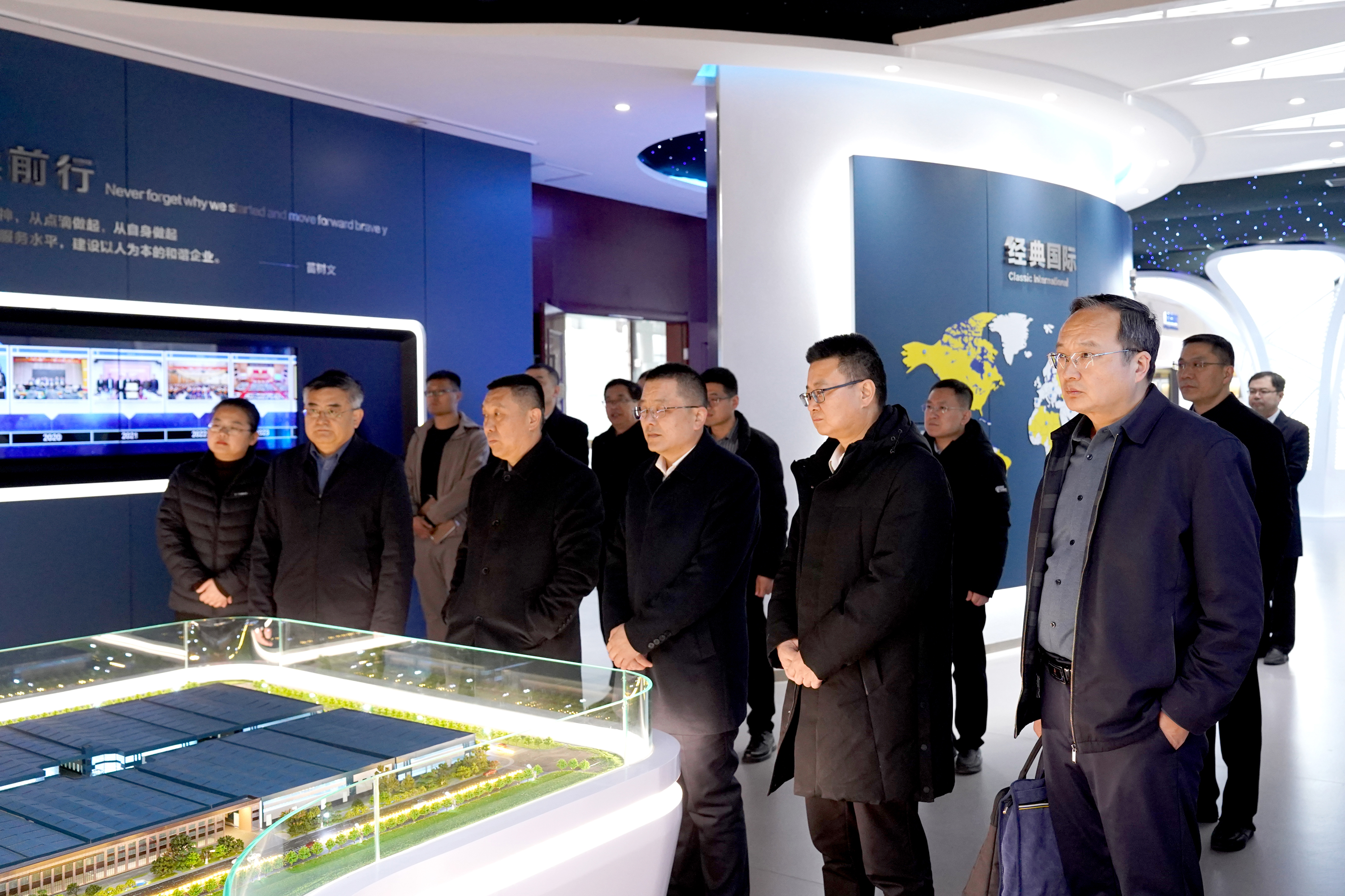 在集團文化展館,史振華董事長對濟寧學院領導的到來表示熱烈歡迎。仲紅波書記一行聽取了企業的發展歷程、文化建設、鋼結構行業發展有關介紹,了解了企業的科技創新、產學研合作、人才引進、科研平臺建設等情況。