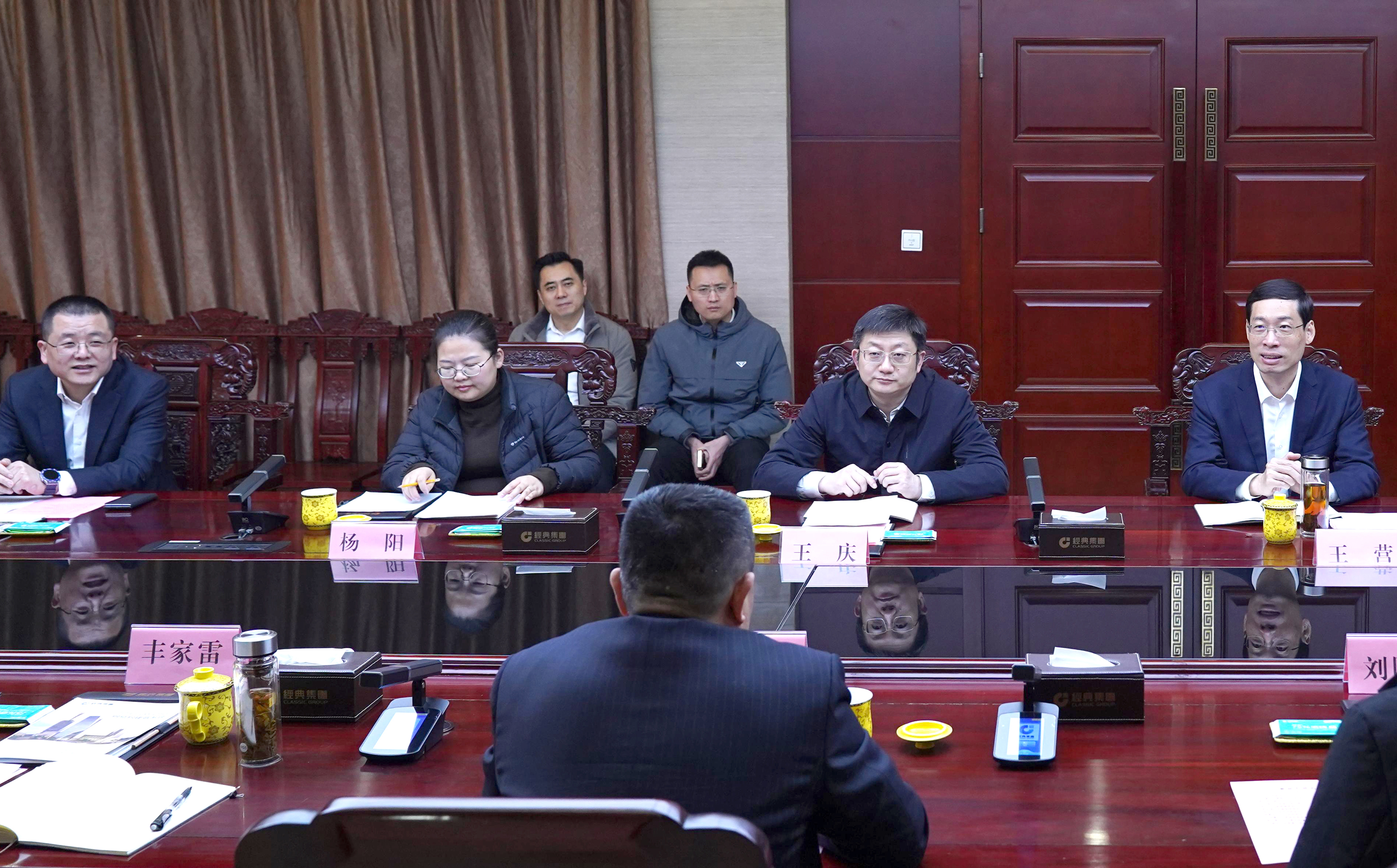 3月5日,濟寧學院黨委書記仲紅波,黨委副書記豐家雷,副院長劉國棟一行到經典集團調研科技創新、校企合作等情況。兗州區委書記王慶,區委副書記、區長王營,副區長楊陽,經典集團董事長史振華,新兗鎮、工業園區、教體局、科技局等部門負責人陪同調研。