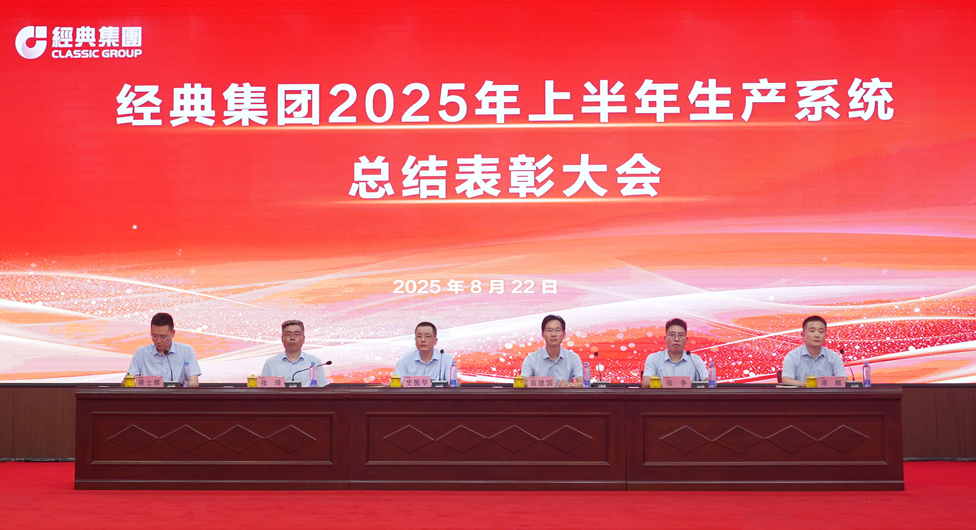 集團董事長史振華作重要講話,經典控股總經理高建國宣讀了表彰決定,集團副總經理兼生產總監張琦總結上半年工作完成情況,對下半年工作做了統籌安排,集團副總經理侯士輝主持大會。