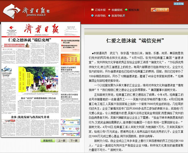 濟寧日報:經(jīng)典集團弘揚優(yōu)秀傳統(tǒng)文化,樹員工道德至上新風(fēng)