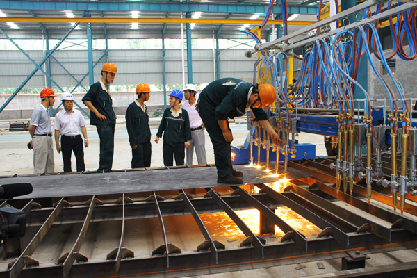 集團公司董事長及領導一同視察二期生產車間加工現場